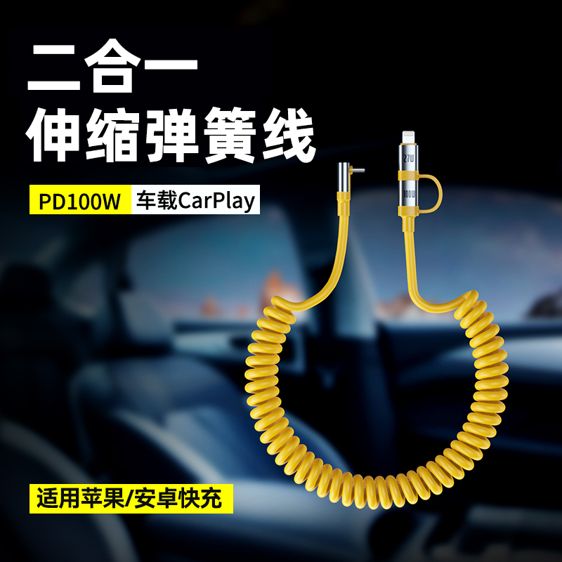 烈魔弯头弹簧伸缩二合一快充数据线100W适用于苹果华为iphon