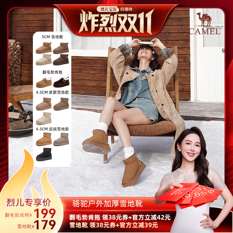 骆驼女鞋时尚雪地靴加绒加厚棉鞋