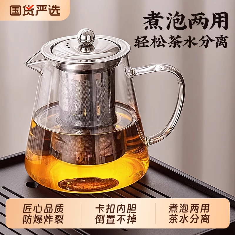 玻璃茶壶单壶耐高温304过滤网加厚泡茶壶防爆套装明火家用煮茶