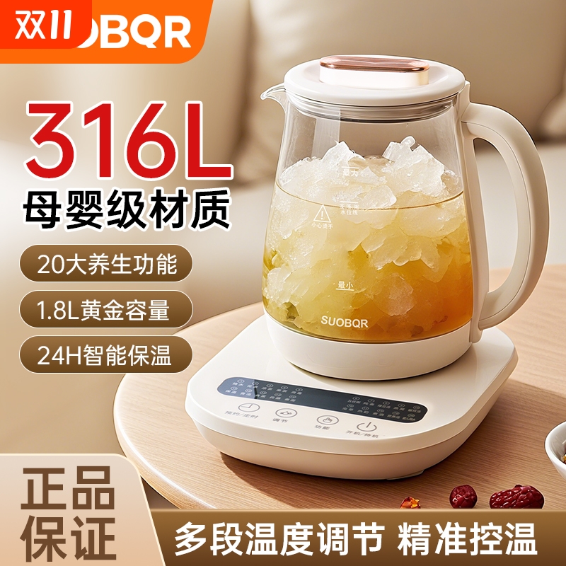 苏泊养生壶煮茶办公室多功能家用全自动烧水壶保温1.8L玻璃恒温壶