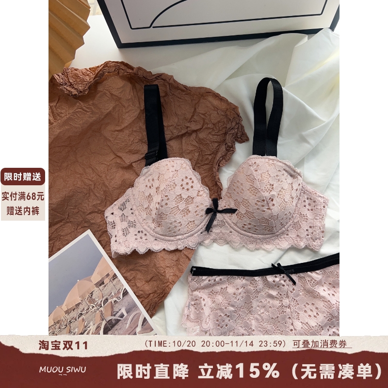 恋爱交响曲 法式蕾丝内衣女薄款小胸聚拢软钢圈性感纯欲文胸套装