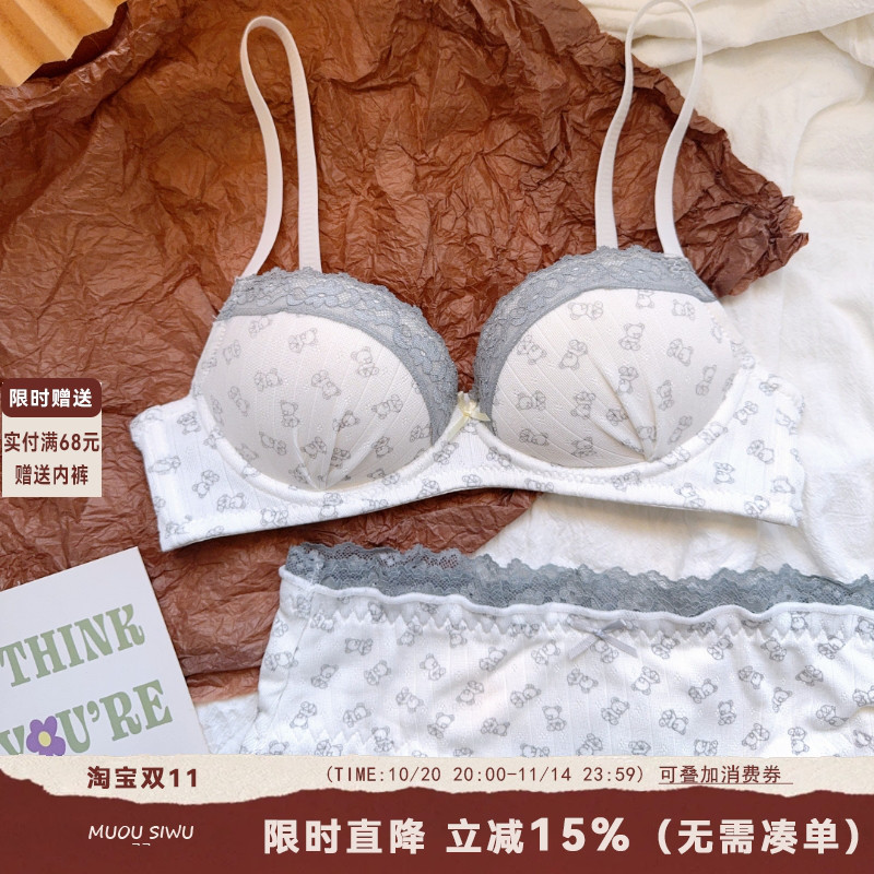 纯欲风日系可爱小熊内衣女小胸聚拢显大上托防下垂无钢圈文胸套装