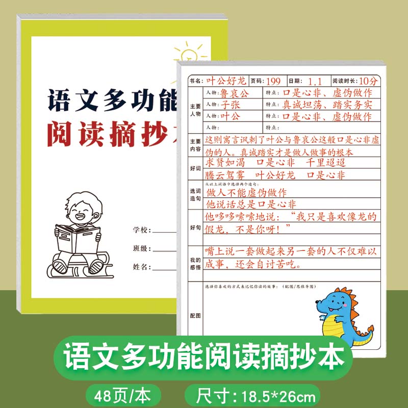 语文多功能阅读摘抄本小学生初中生课外阅读读书笔记摘抄好词好句人物