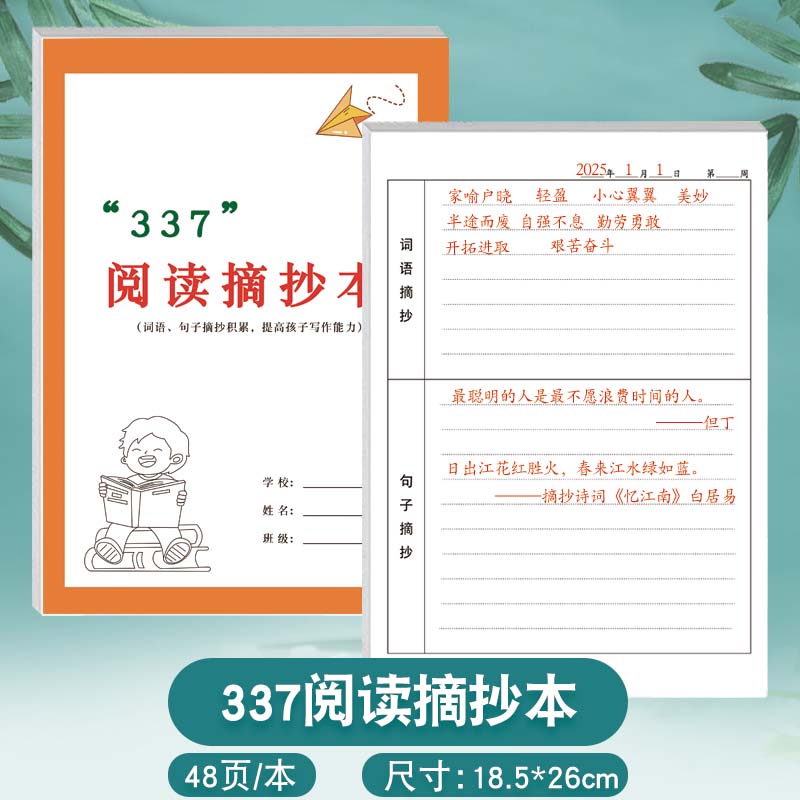 “337”阅读摘抄本小学生初中生课外阅读读书笔记摘抄好词好句人物