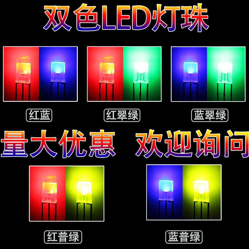 f5发光二极管双色灯珠厂家5mm雾状圆头红普绿蓝双色led直插式