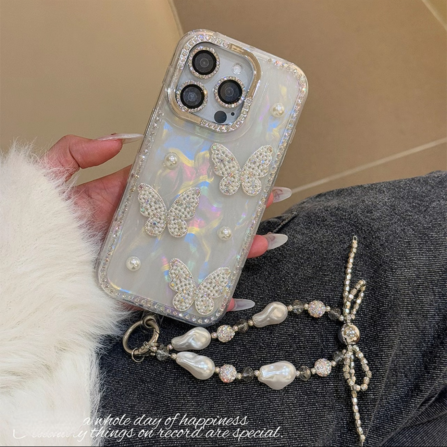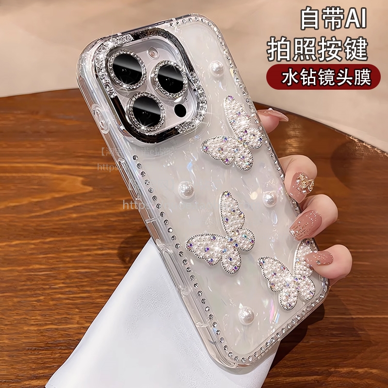 水钻贝壳纹珍珠蝴蝶适用于苹果16promax手机壳新款17pro