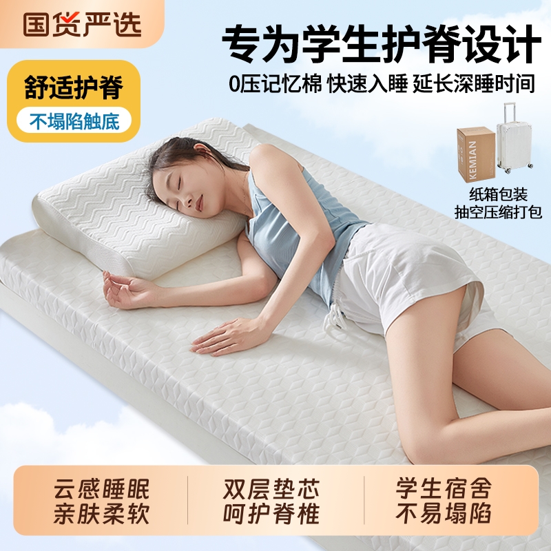 梦洁登月慢回弹记忆绵床垫软垫防螨抑菌榻榻米家用学生宿舍垫子