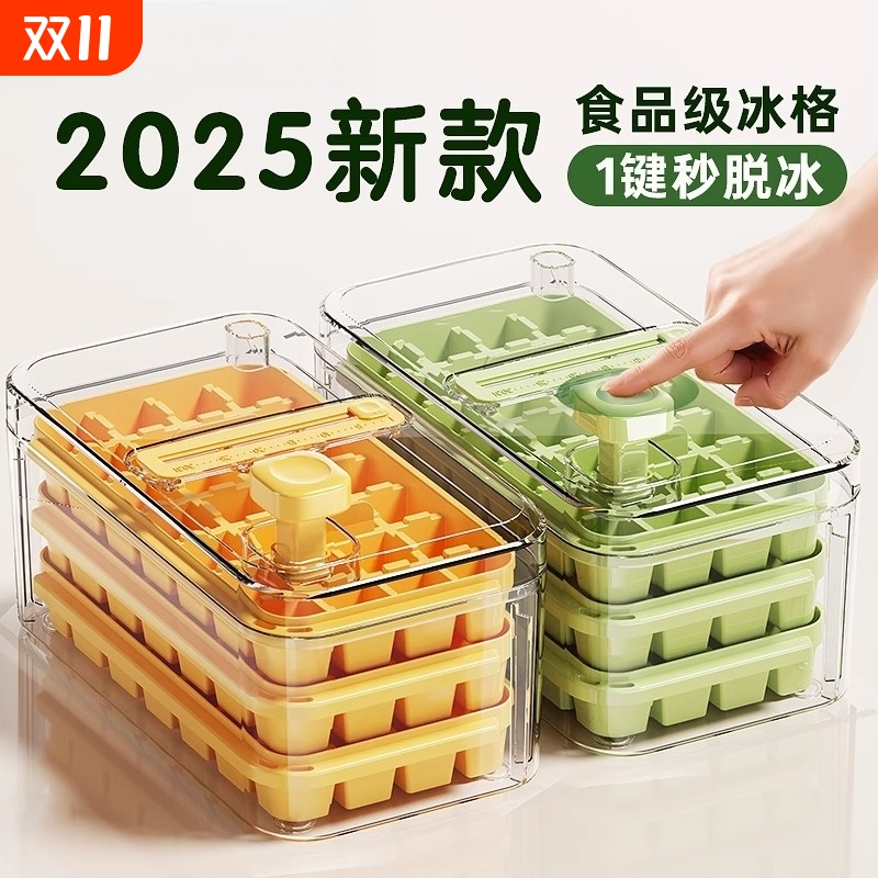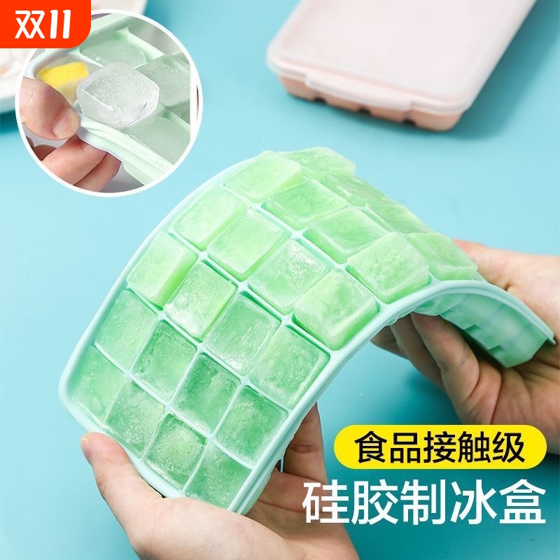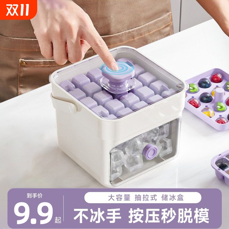 按压冰格冰块自制模具制冰大容量储存储冰家用食品级冰箱带盖