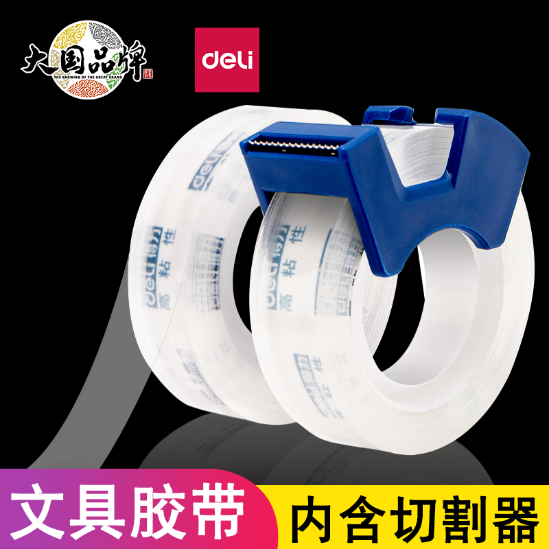 得力文具透明胶带内含切割器便携