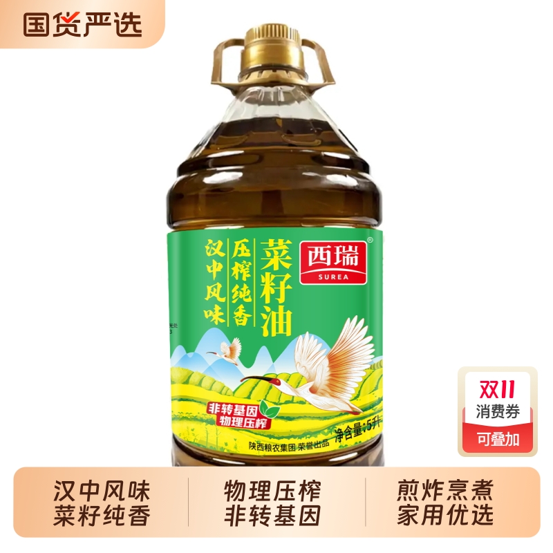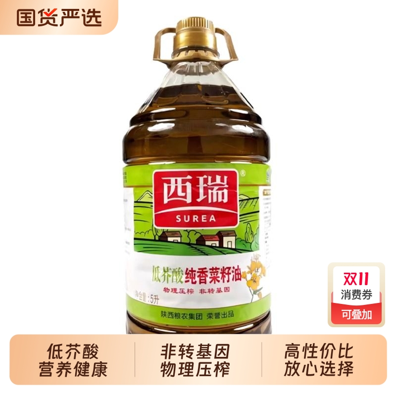 【西瑞】低芥酸纯香菜籽油5L 非转基因物理压榨家用食用植物油