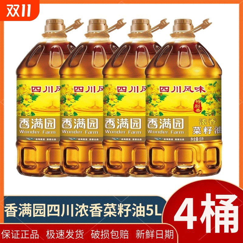 香满园四川浓香菜籽油5L*4桶装团购炒菜食用健康油正品家用精炼