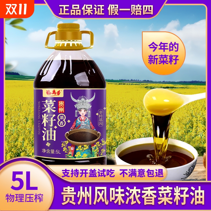 贵州9.2斤物理压榨浓香非转基因粮油5L食用油菜籽油菜籽小榨家用