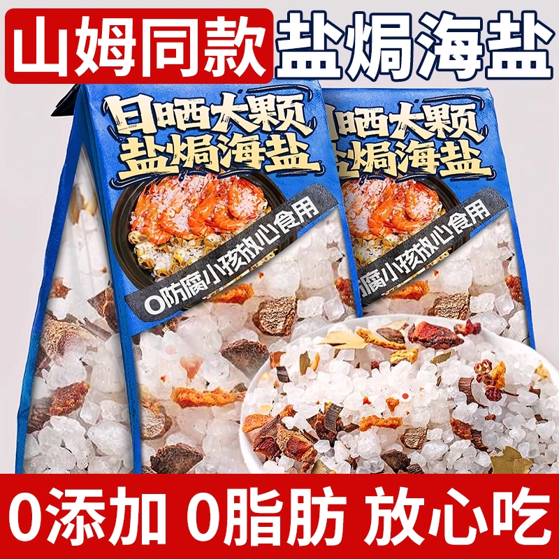 山姆同款海盐粗盐大粒盐焗海鲜食用大闸蟹虾鸡专用调味料家用八角