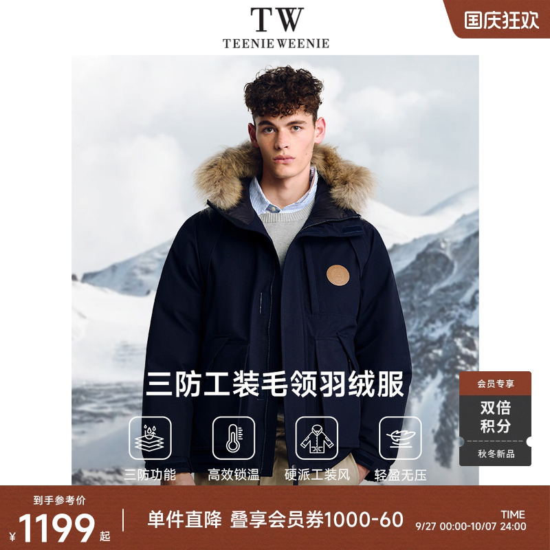 Teenie Weenie小熊男装工装三防貉子毛宽松保暖派克服冬