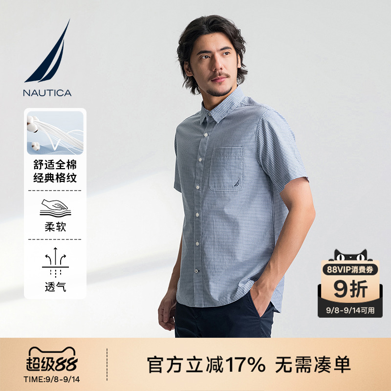 NAUTICA/诺帝卡透气短袖格纹衬衫
