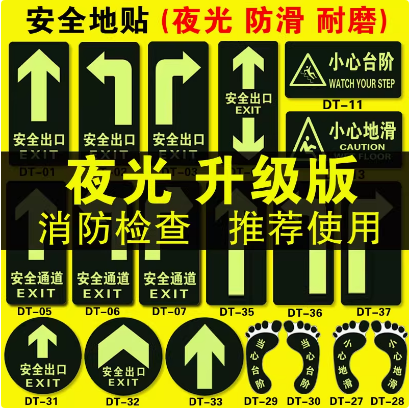 安全出口指示牌自发光地贴提示牌消防楼梯通道疏散标识贴箭头地标贴夜