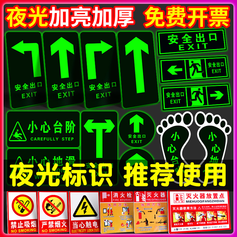 安全出口指示牌消防标识标牌夜光墙贴地贴楼梯通道疏散应急紧急逃生标