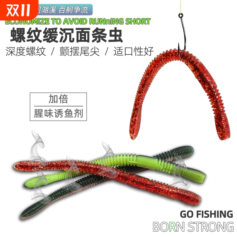 缓沉面条虫软饵wacky倒钓钩软虫黑坑路亚饵翘嘴鲈鱼鳜鱼假饵专杀