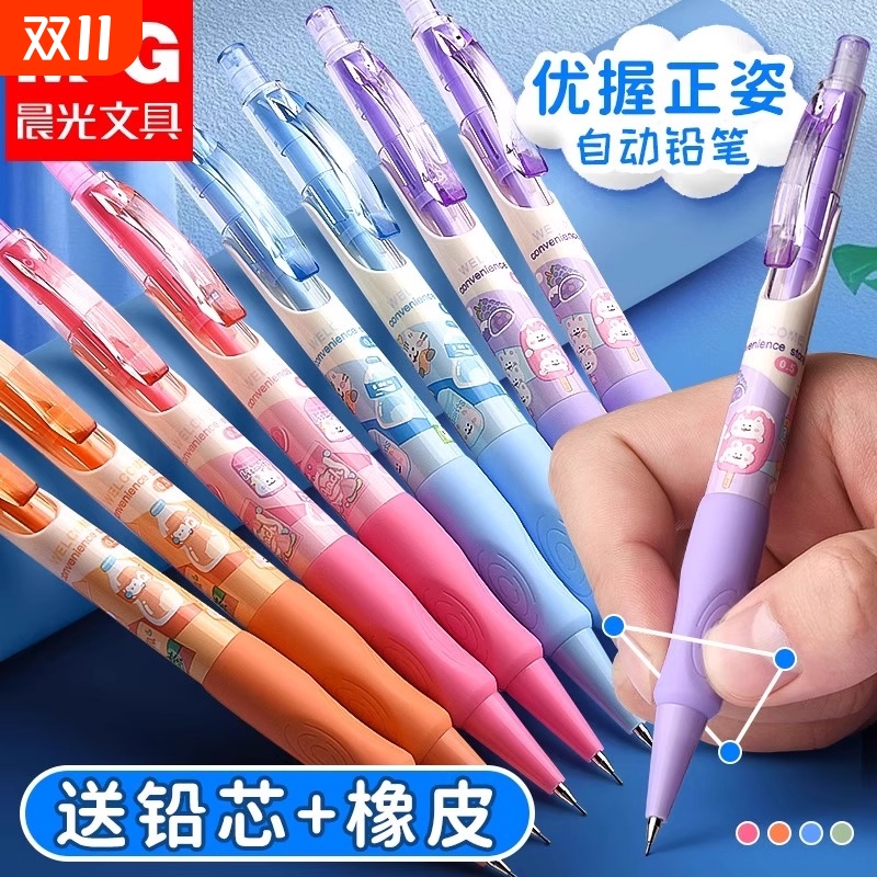 晨光馋猫小卖部自动铅笔小学生专用不断芯自动笔0.5握笔姿势可爱女