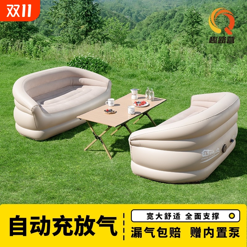 趣路营自动充气户外沙发露营双人懒人气垫床垫音乐节必备便携神器