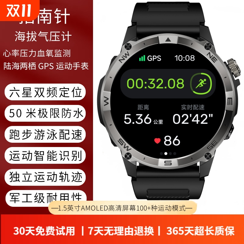 GPS双频户外跑步专业游泳骑行登山心率配速血氧监测运动智能手表