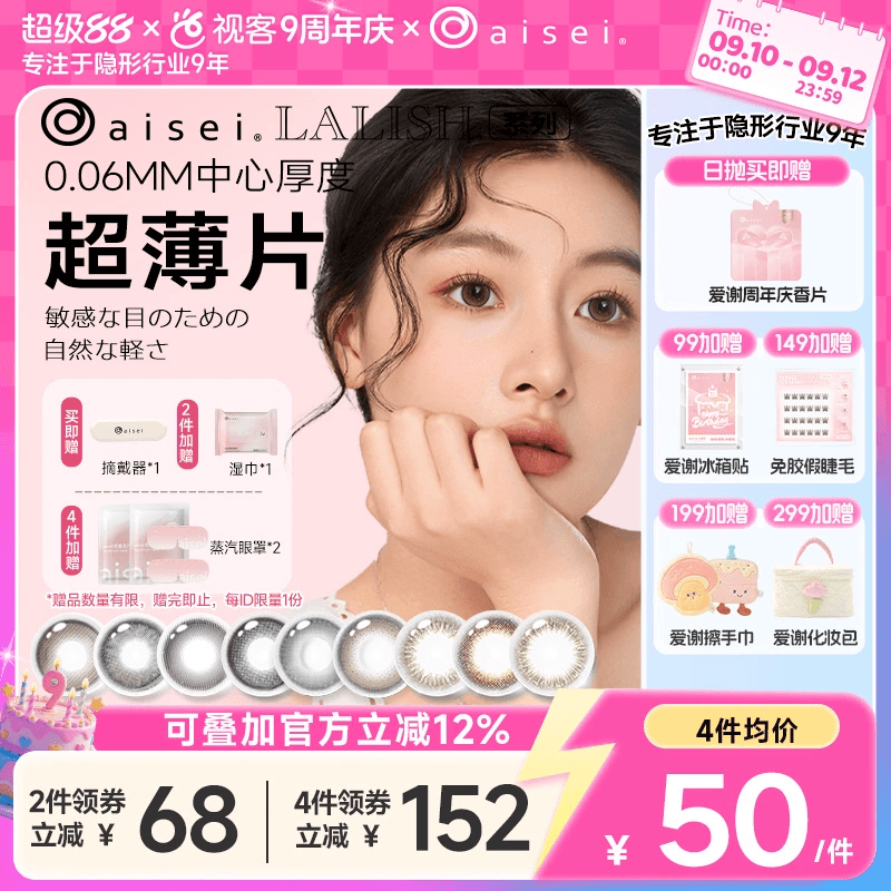 aisei爱谢lalish领丽秀美瞳日抛10片松子米酒隐形眼镜官