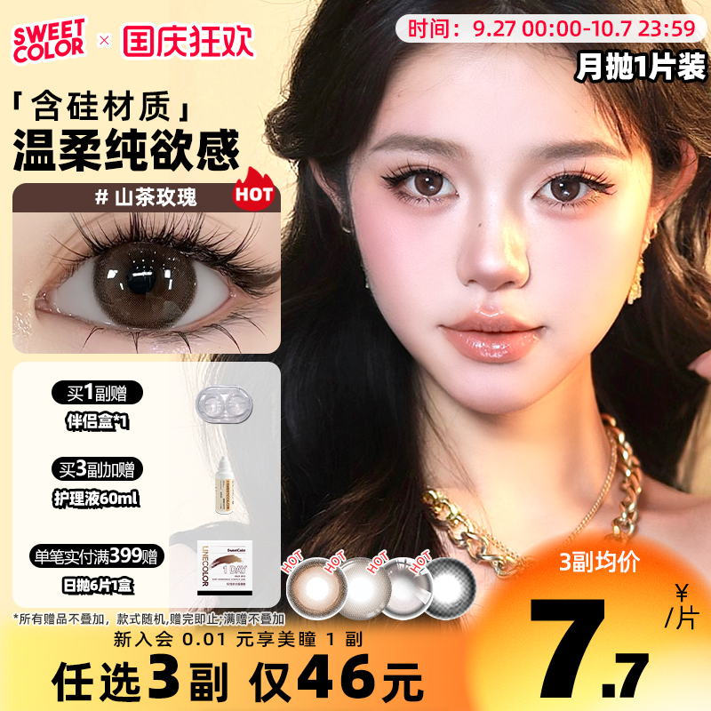 SweetColor月抛1片含硅美瞳山茶玫瑰可可泡芙自然氛围感隐