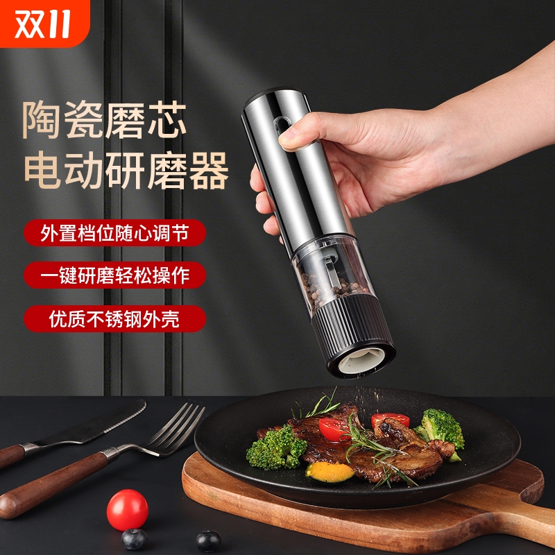 电动胡椒研磨器家用厨房调料海盐胡椒粉神器磨黑胡椒粒花椒研磨瓶