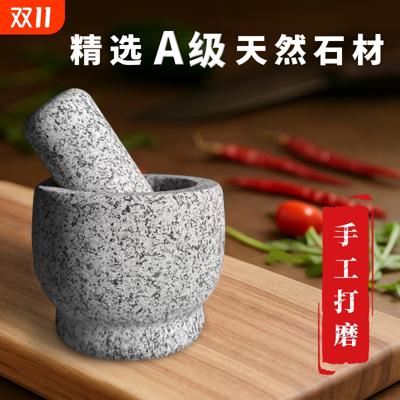 捣蒜器天然石臼石头中药研磨器花岗岩压蒜老式蒜臼子家用酒店蒜泥