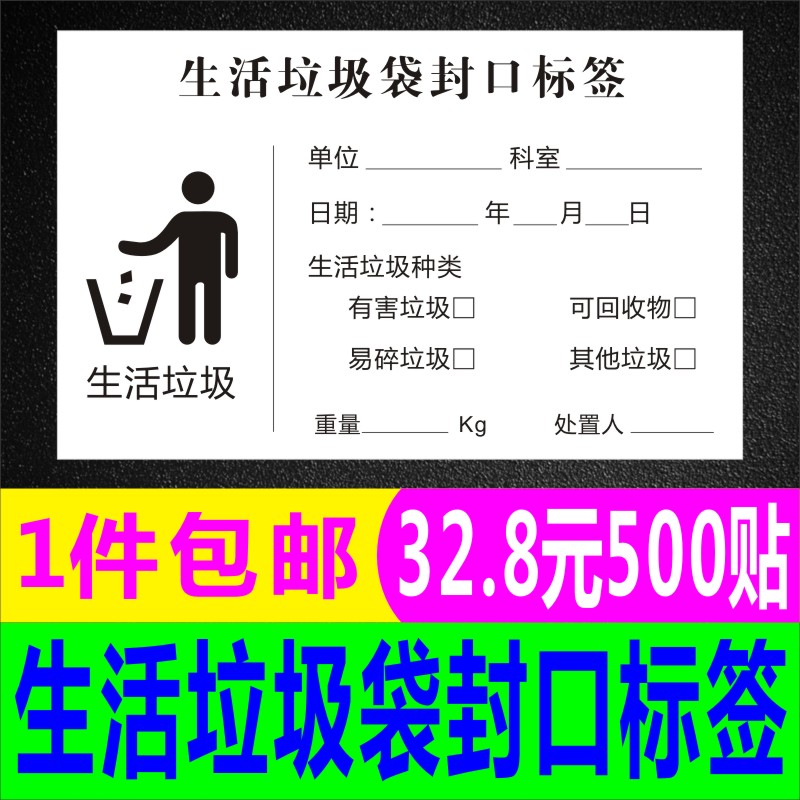 生活垃圾袋封口标签贴纸单位科室日期垃圾种类不干胶印刷定制A