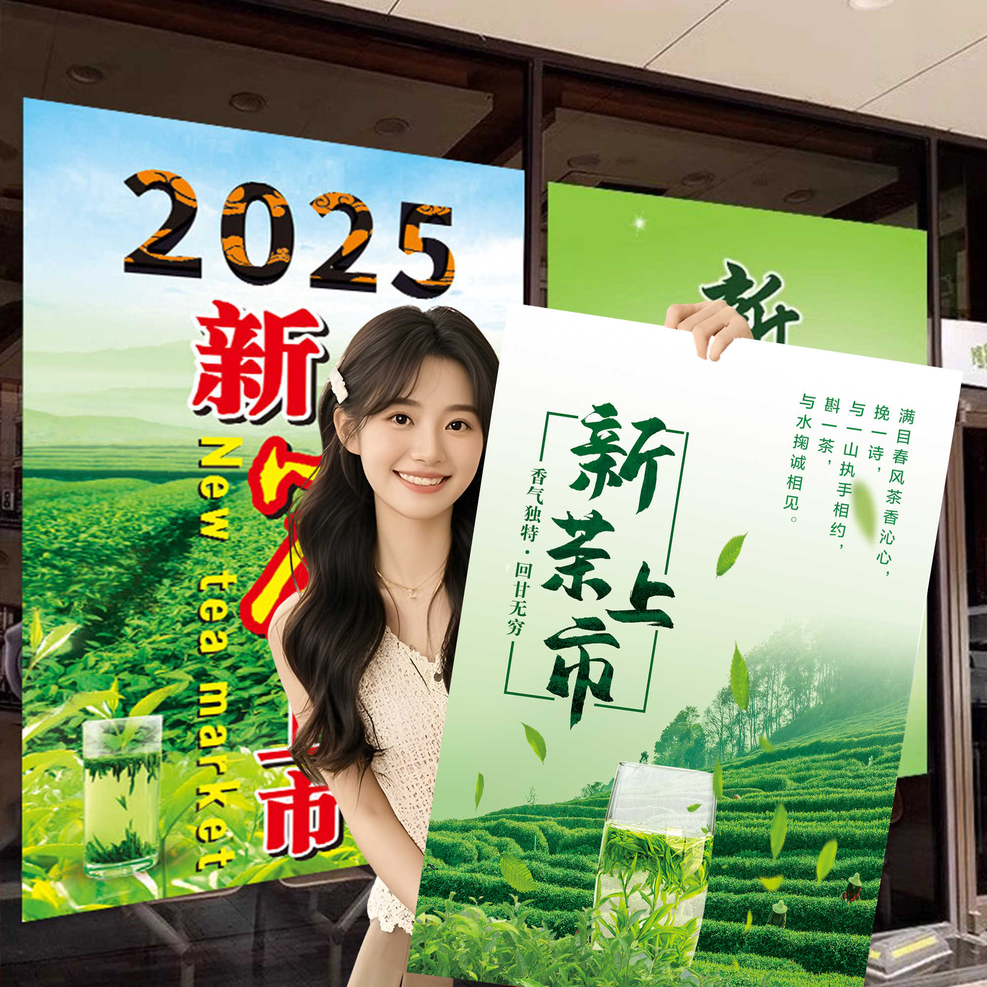 春茶上新广告茶城茶馆背景墙贴画新茶上市海报茶叶店玻璃门贴纸春季新