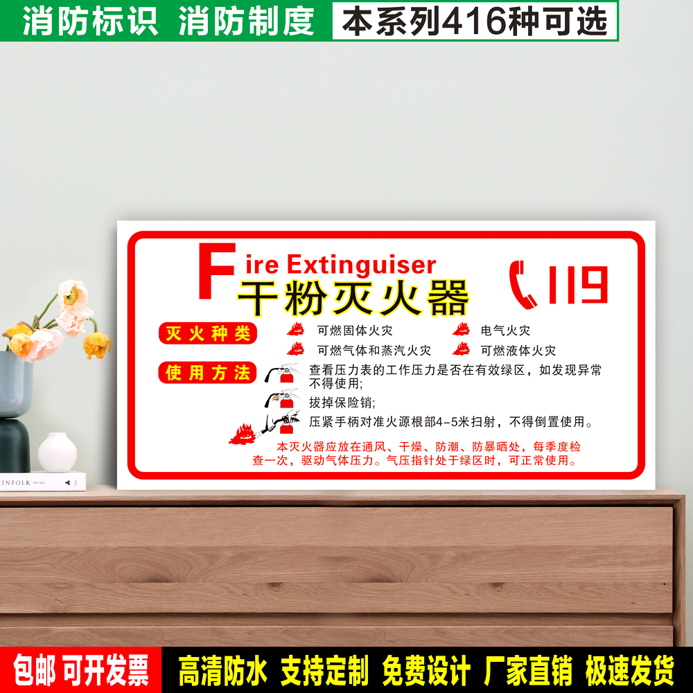 干粉灭火器灭火种类使用方法 定制粘贴纸反光膜PVC板消防验厂标识