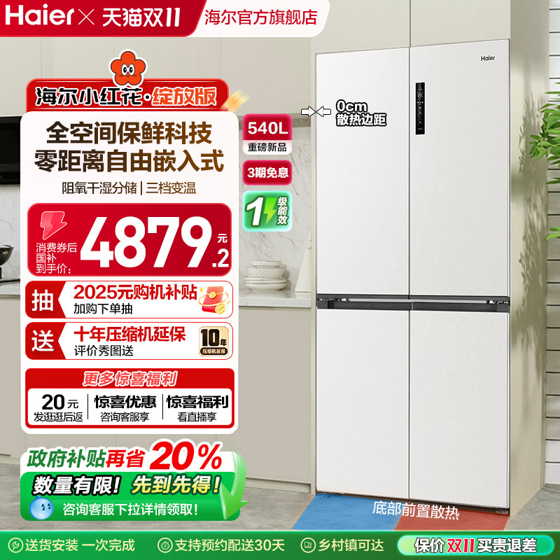 换新补贴海尔小红花540L双开四门一级零嵌入式家用超薄电冰箱新品