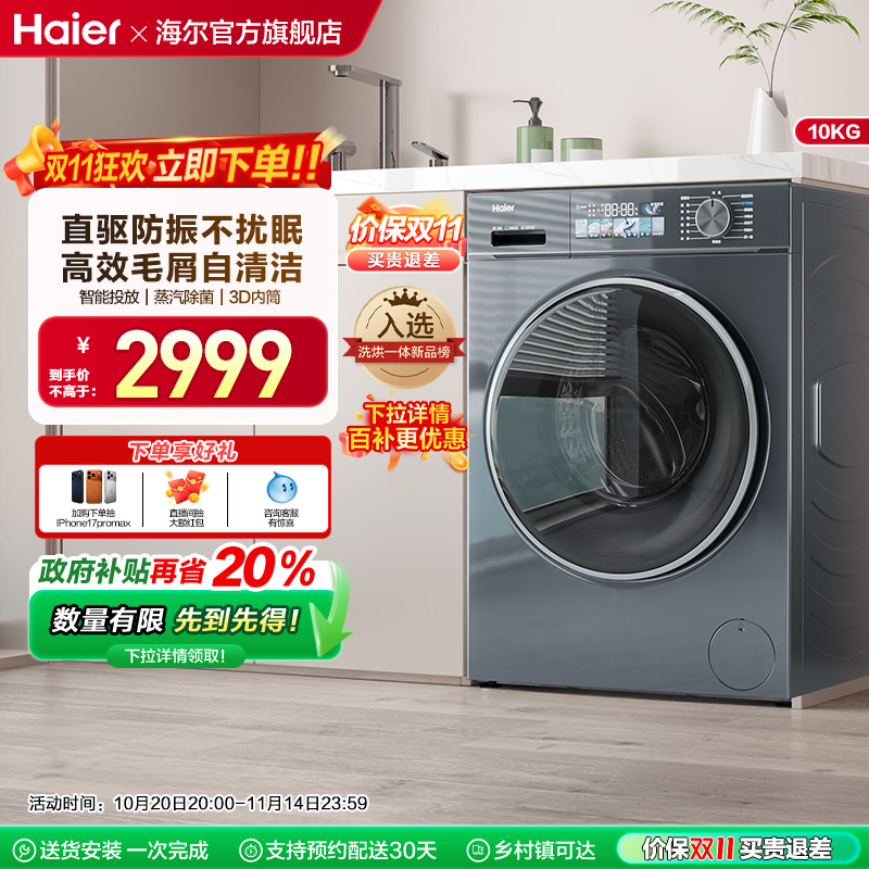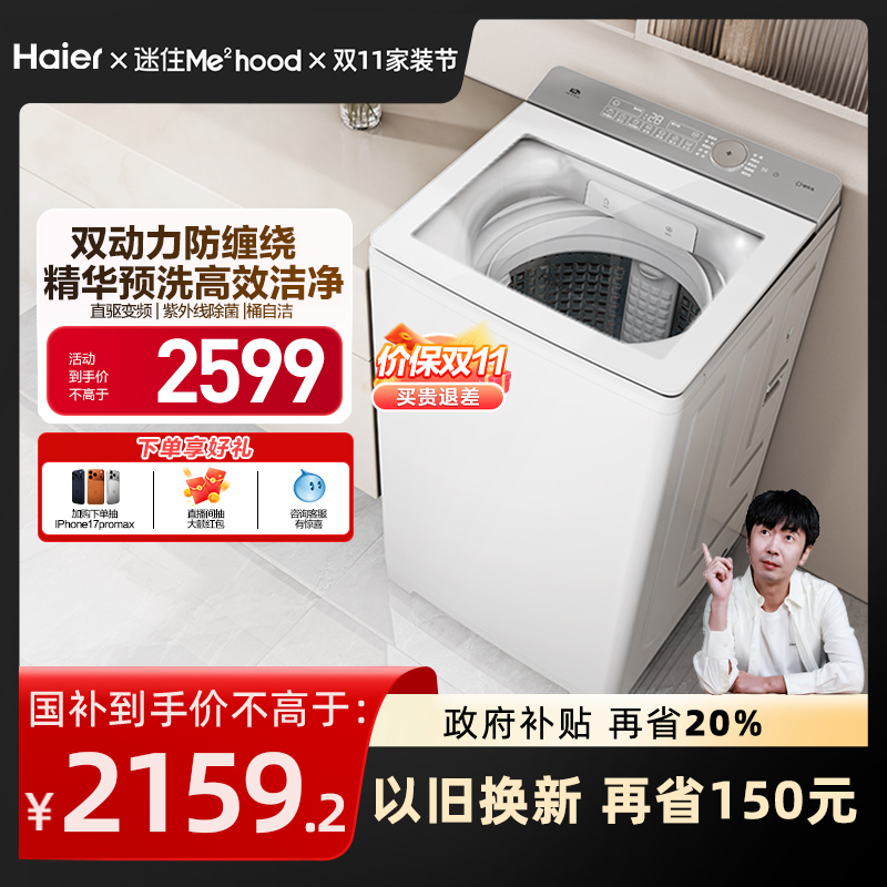 海尔小红花波轮双动力精华洗10kg大容量家用全自动洗衣机73M