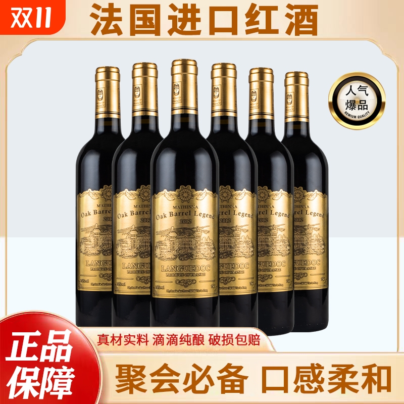 法国进口干红葡萄酒整箱6支红葡萄酒14度干红赤霞珠红酒过节送礼