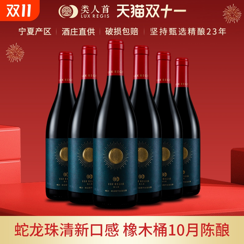 类人首 宁夏红酒 皓月蛇龙珠橡木桶干红葡萄酒750*6支装