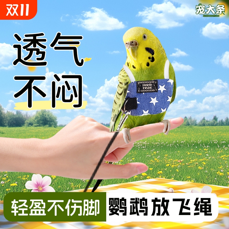 鹦鹉放飞绳不伤脚超轻训练绳子虎皮玄凤背心飞行服外出遛鸟飞行绳