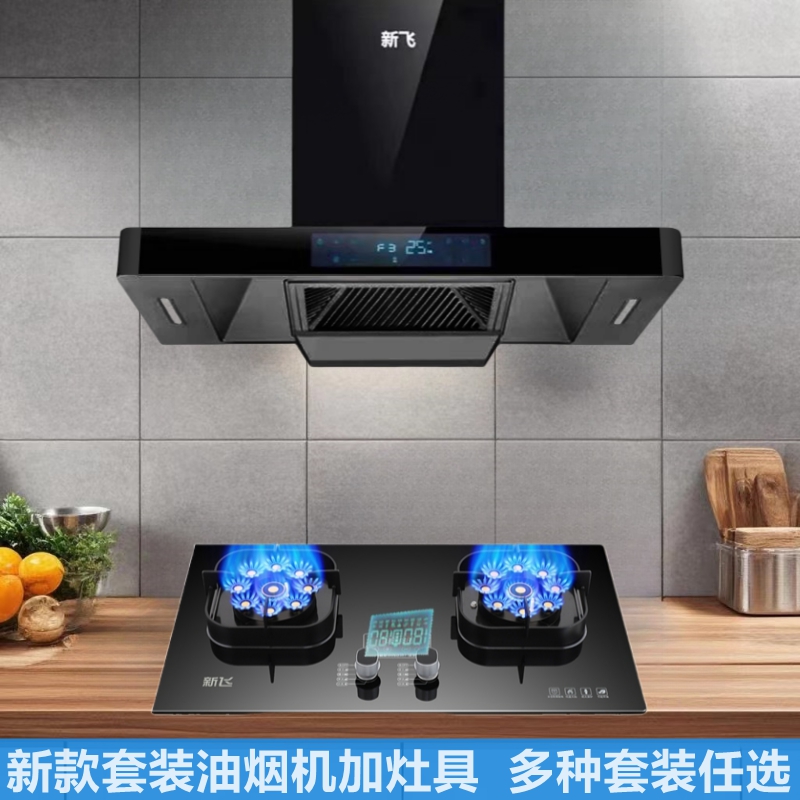 新飞顶吸式抽油烟机燃气灶套装家用厨房油烟机和煤气灶套餐组合