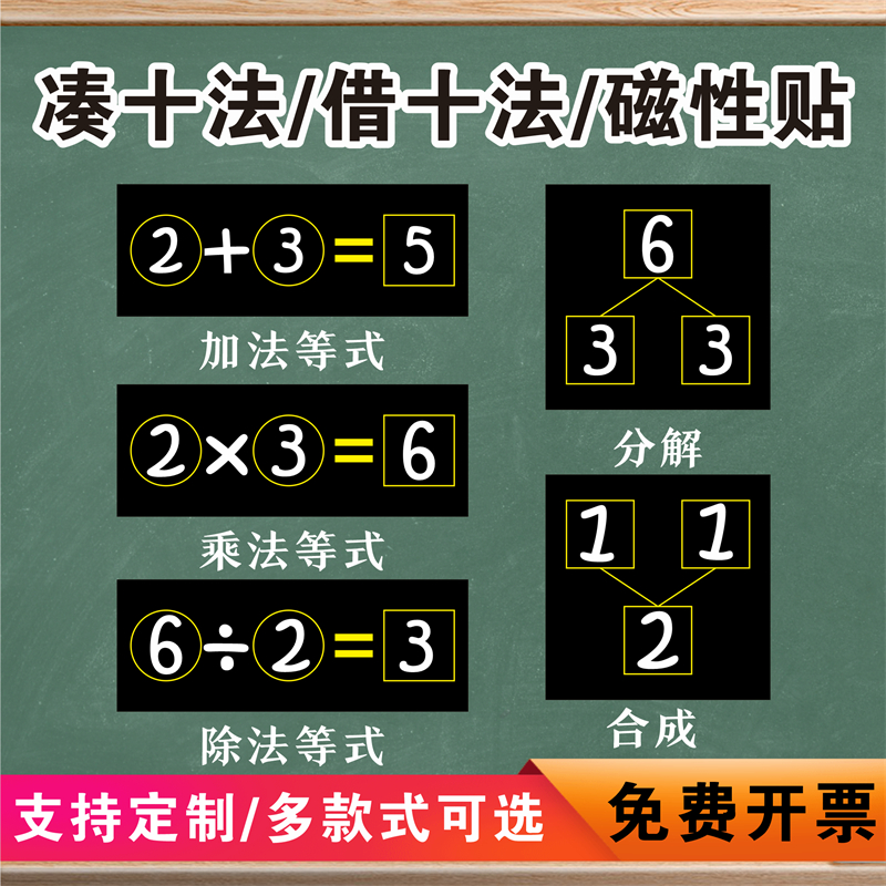 数学算式分解图凑十法/借十法/分解与组成教学教学黑板可移动磁吸黑