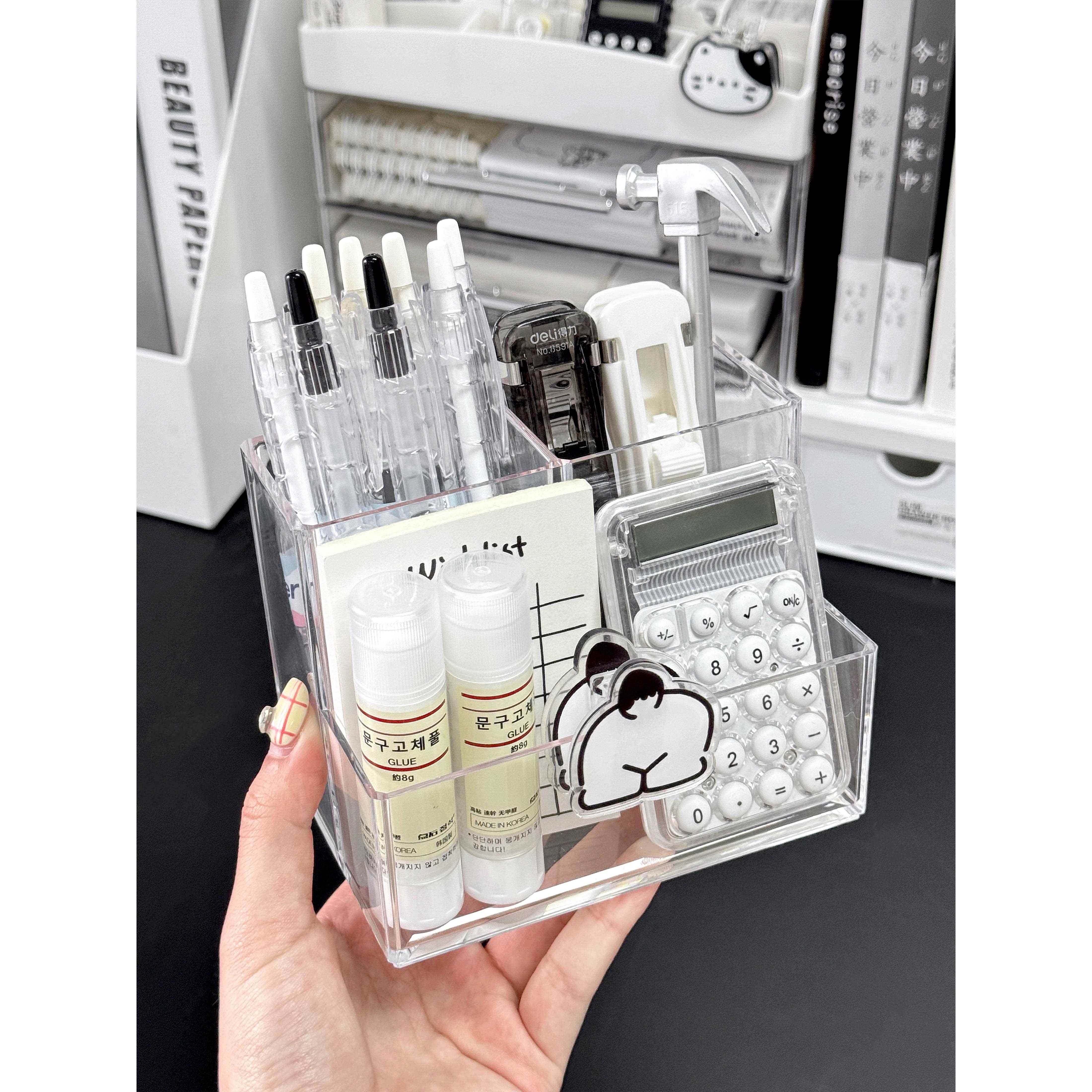 丙烯酸透明收纳票房桌面大容量文具组织者宿舍笔筒隔间收纳架