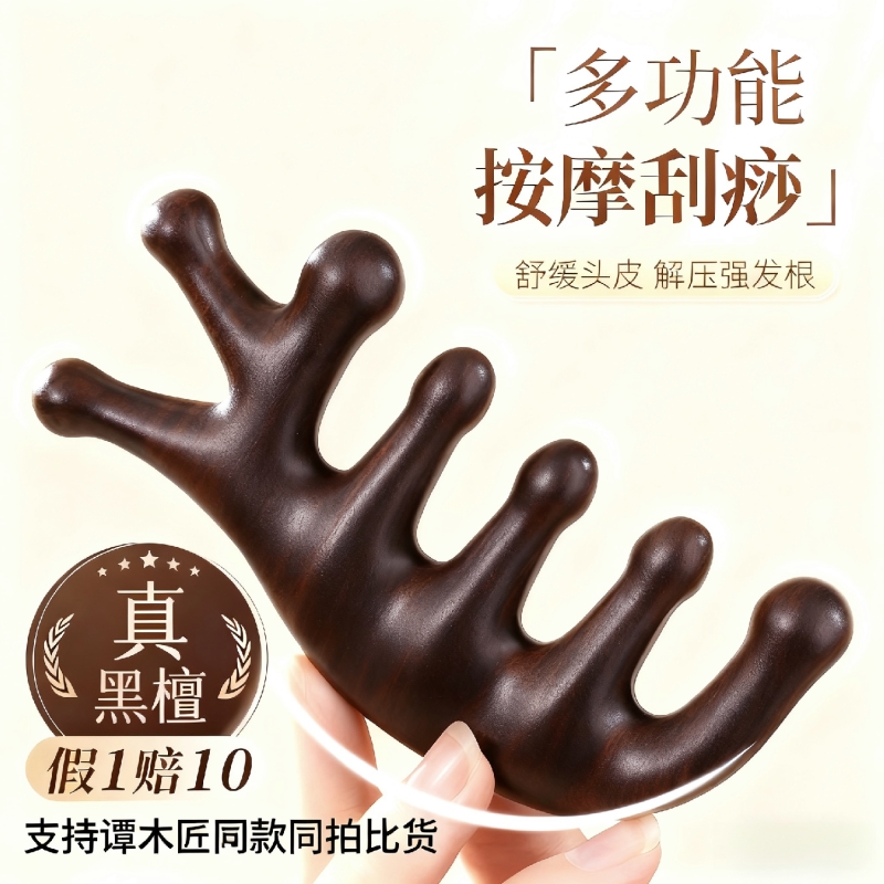 天然黑檀木四合一按摩梳经络梳头部颈部刮痧疏通多功能头皮脸部