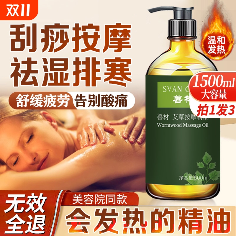 艾草生姜按摩精油发热全身通经络肩颈推背开背推拿面部刮痧推油