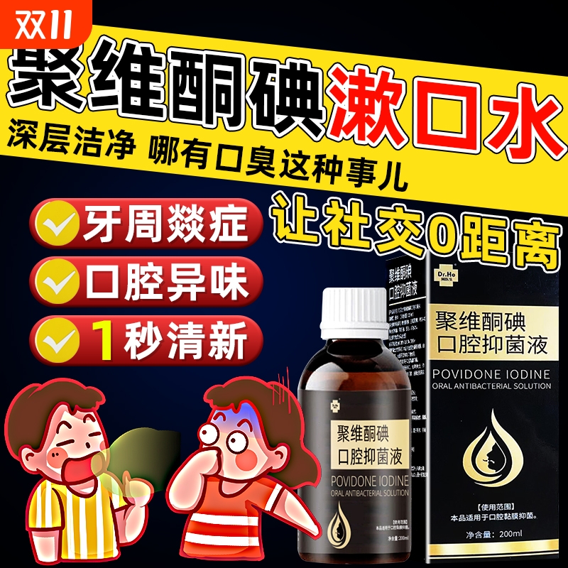 碘伏漱口水国聚维酮碘含漱液药杀菌除口臭持久留香准牙结石字号