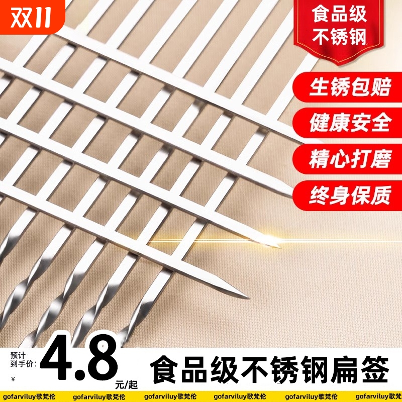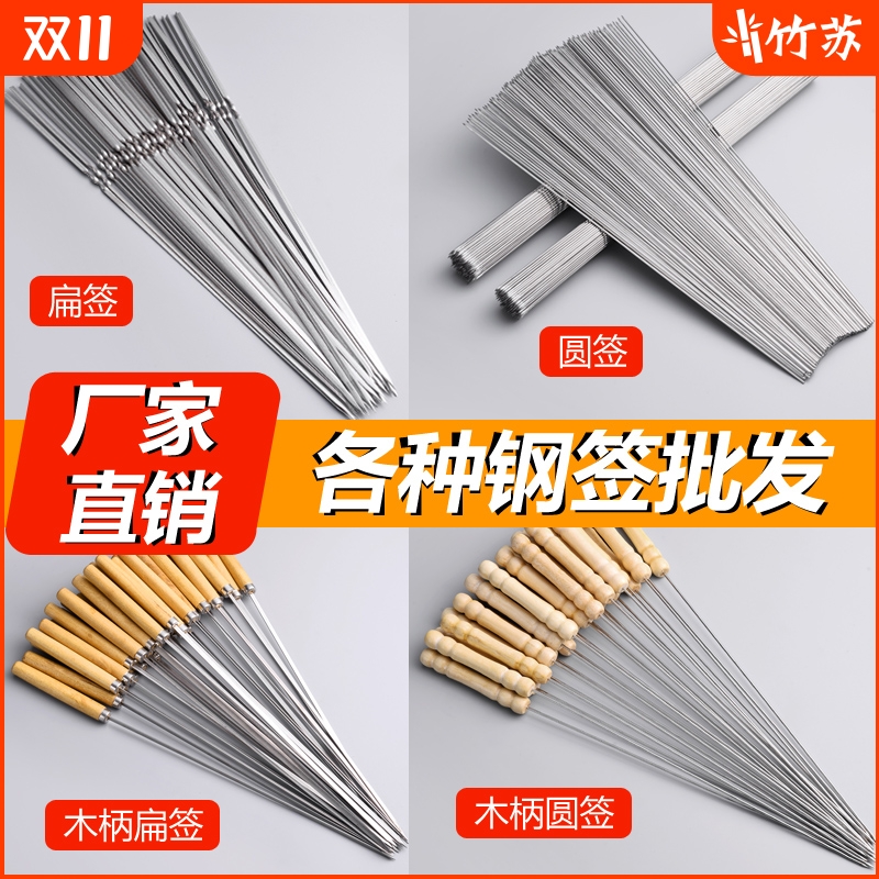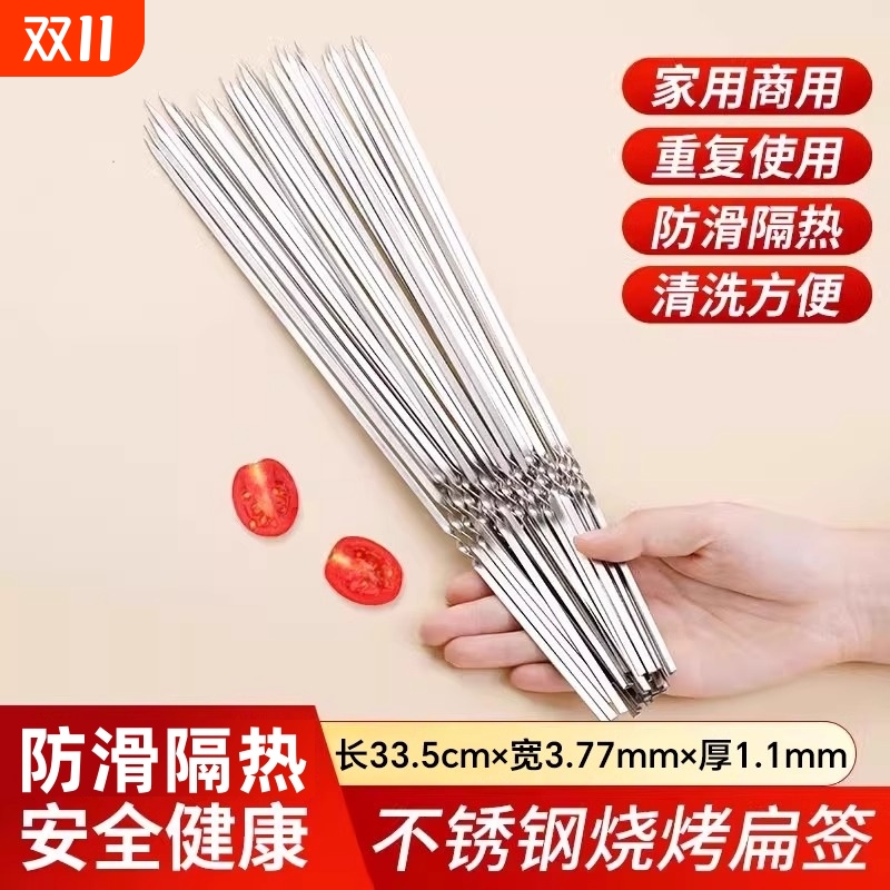 烧烤签子不锈钢羊肉串烤肉铁钎子食品级户外烤串扁签