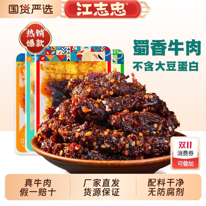 江志忠250g散称五香麻辣藤椒牛肉干零食小包装袋四川特产川味美食