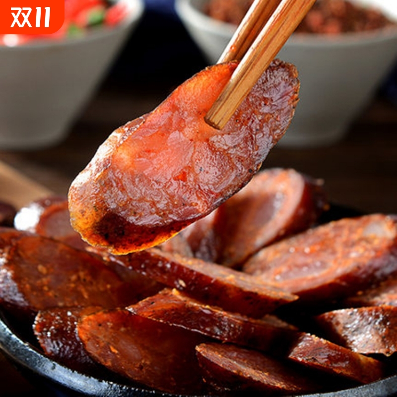 麻辣香肠湖北恩施特产美食农家手工柴火烟熏腊肠广味川味500g辣味