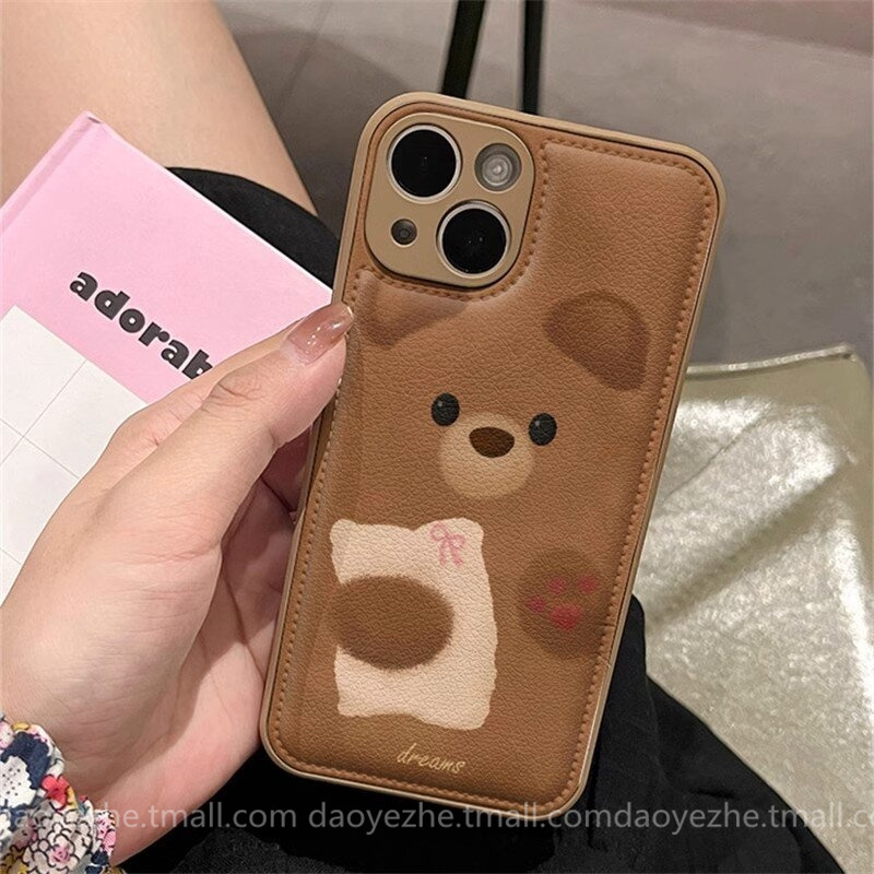 秋冬皮纹棕色小熊适用华为mate70手机壳Pura80新款P60