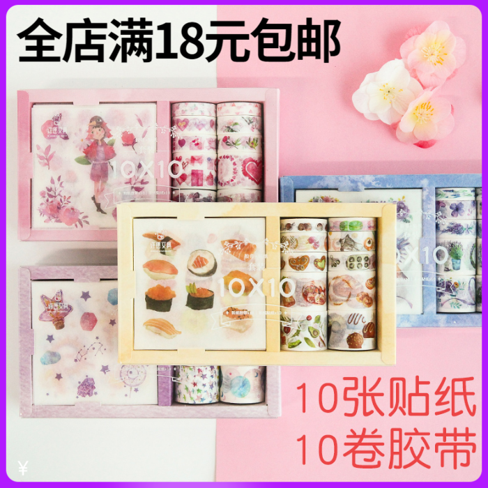 手账贴纸套装和纸胶带礼盒文艺清新少女装饰可爱贴纸学生彩色胶布