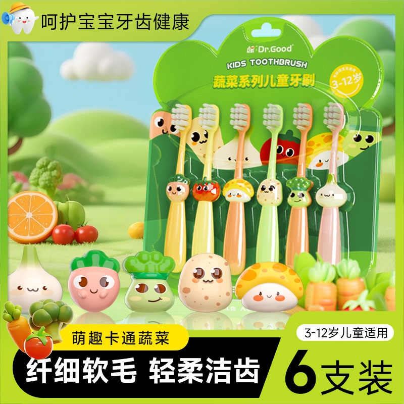 萌趣蔬菜联盟儿童软毛牙刷温和清洁呵护牙齿3-12岁男女宝训练适用