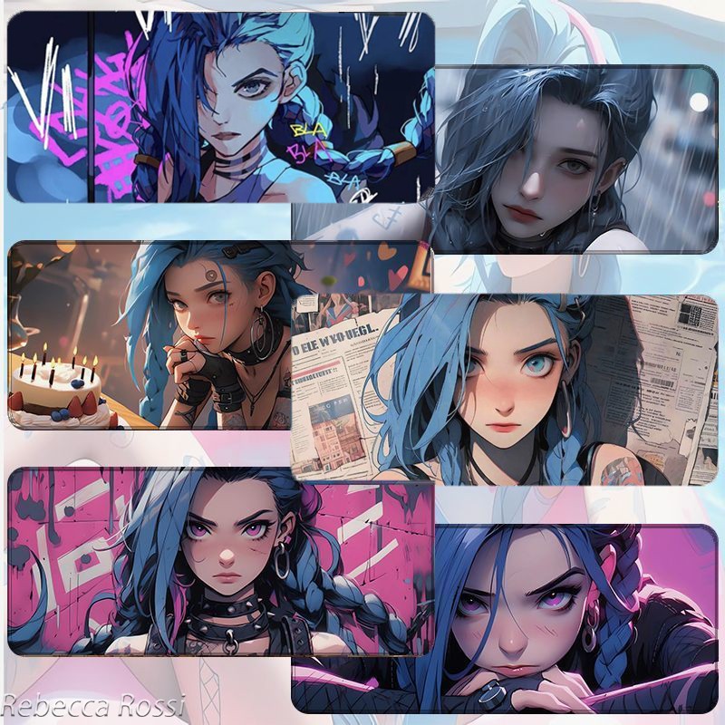 暴走萝莉金克丝鼠标垫超大号英雄联盟电脑键盘垫电竞游戏桌垫新款